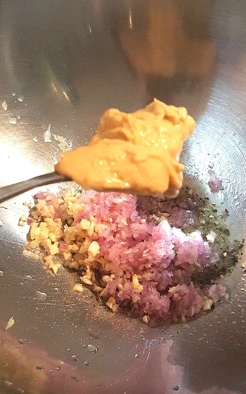 No quantities, no measure? You decide according to your taste, write down how much you use this time, then you will tune up the proportions to make it exactly to your liking after a few times. It will be your personal recipe. Aim for a creamy sauce that you can use for dipping, or as salad dressing by adding a little extra olive oil when you toss your greens.